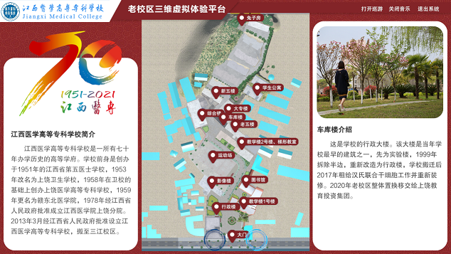 2021年10月30日是江西醫學高等專科學校70周年華誕。我司給院方定制開發的校史館VR互動體驗系統順利上線運行。