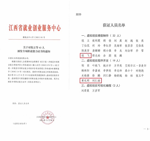 江西省虛擬現(xiàn)實(shí)專項(xiàng)職業(yè)能力證書考核,也是VR行業(yè)首本人社部門認(rèn)定的證書考試,已于2021年12月19日在江西以太科技園有限公司舉辦,考試包括虛擬現(xiàn)實(shí)模型制作、虛擬現(xiàn)實(shí)可視化編程、虛擬現(xiàn)實(shí)程序開發(fā)等三個(gè)項(xiàng)目方向,包含理論和上機(jī)考試兩個(gè)部分。